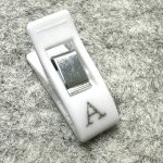 These 1" clips are engraved with letters A-Z and numbers 0-9, for a total of 36 clips.